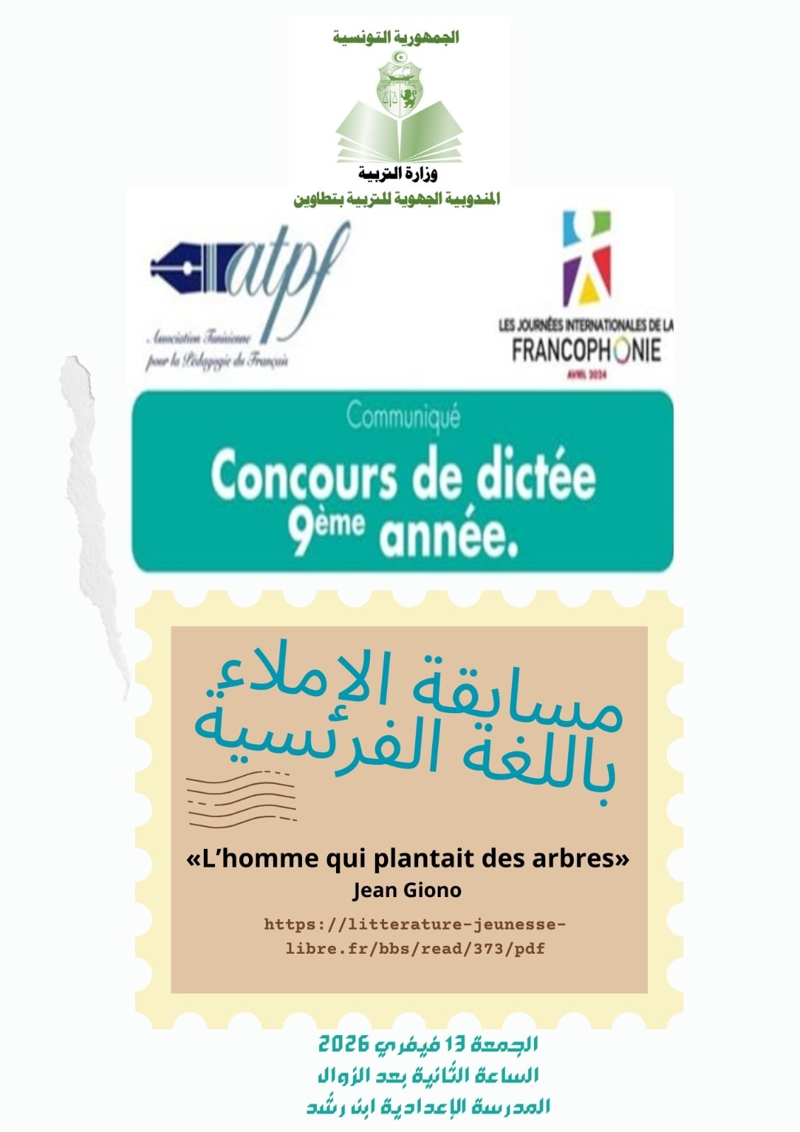 مسابقة الإملاء باللغة الفرنسية لتلاميذ السنة التاسعة أساسيا بالمدارس الإعدادية