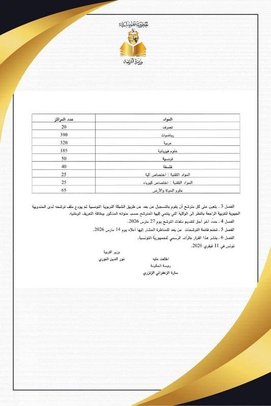 أنت هنا: Home أخبارنا المستجدّات المناظرة الخارجية بالاختبارات لانتداب اساتذة بعنوان سنة 2026